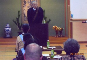 【大阪豊能】身延山檀信徒研修道場修了者で組織されている豊能立正身延会(稲葉郁雄会長)では、一月二十五日能勢町興徳寺(渋谷泰雅住職)において研修会並びに総会を開催し、管内教師十七名出仕のもとに会員四十三名が参加した。