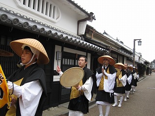 橿原市の蓮妙寺(松島寛幸住職)を出発し、団扇太鼓を打ち鳴らして大音声でお題目を唱え、市内を約二時間にわたって行脚した。