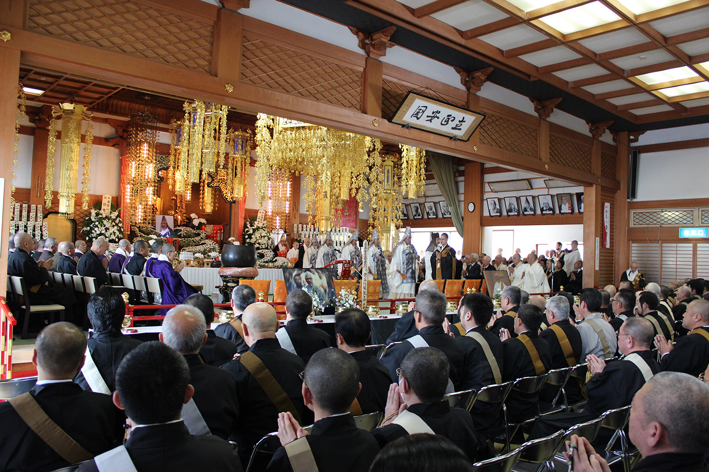 立野良顕葬儀委員長(福岡市本岳寺住職・福岡県宗務所所長・九州教区長)より「主管様からご教示賜りました『仏の魂魄と同化し、仏と一体となる』という心で、主管様の増円妙道を心からお祈り申し上げたい」という挨拶より、本葬儀は開式した。