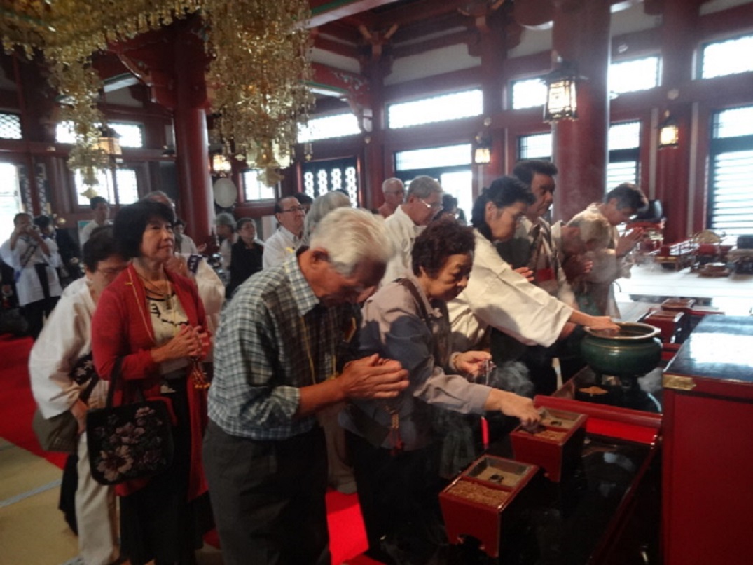 早朝一行はバスで出発し、九時三十分に本山龍口寺に到着。貫首さまお導師のもと、本堂でお経を上げた。