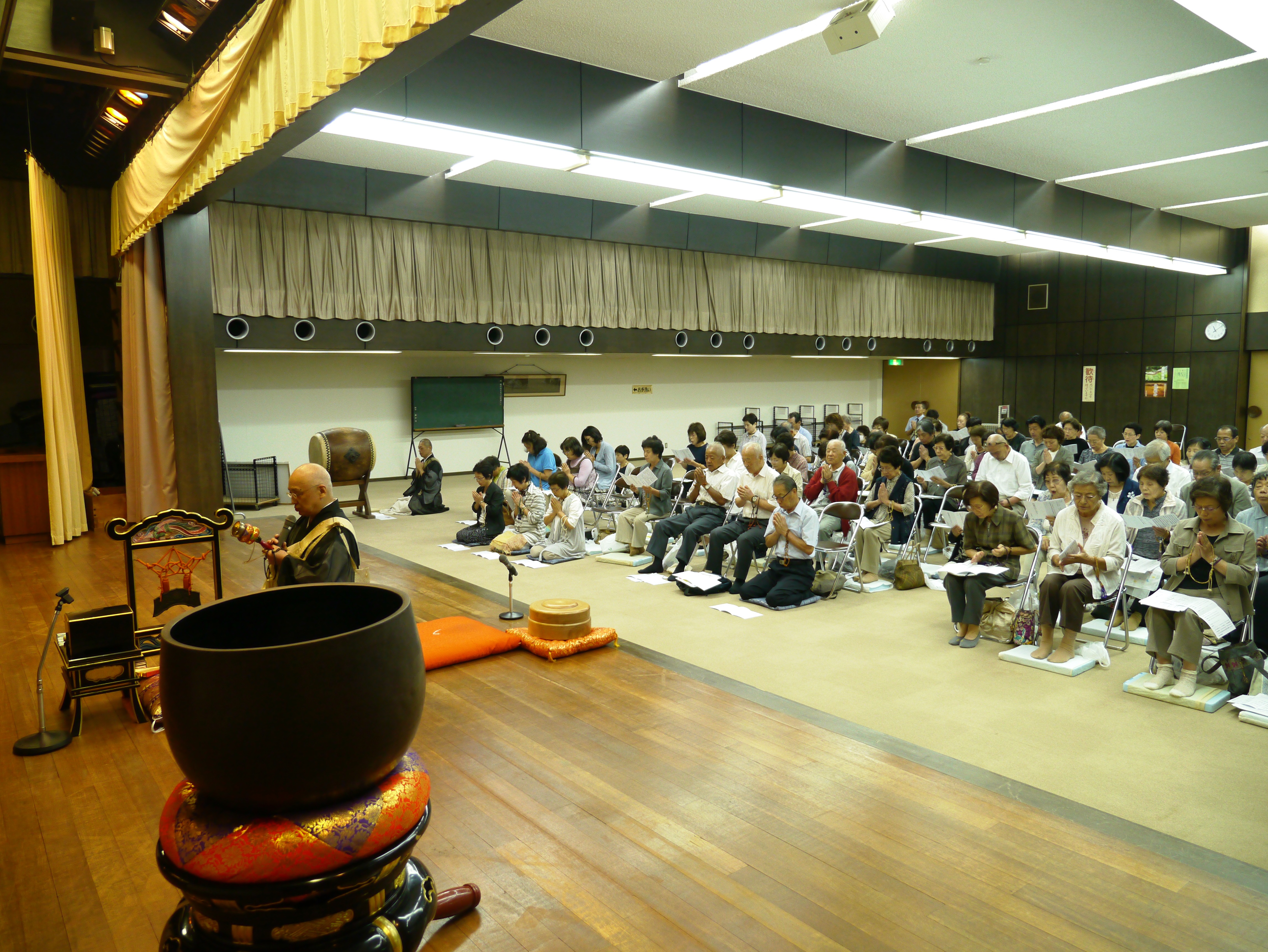 講師には求道同願会副会長で常任布教師の田端義宏上人(青森県永昌寺住職)を迎え「お題目ってなんだろう?唱題行の理念と実践」と題し、日蓮宗においての唱題の重要性を講義した。後半では唱題行を実践し、初めて唱題行をする方にも分かりやすいよう、姿勢や 呼吸の正し方、法界定印の結び方など、こと細かな説明がなされた。 また今回は、近年の世相を反映した「正座ではなく椅子に座ったままでの唱題行」につい ても説明がなされ、田端講師は「唱題行というのは、いつでもどこでもできる修行です。 ご家庭のお仏壇の前で、たった一人でもできるので、ぜひ実践してみてください」と参加 者に勧めた。