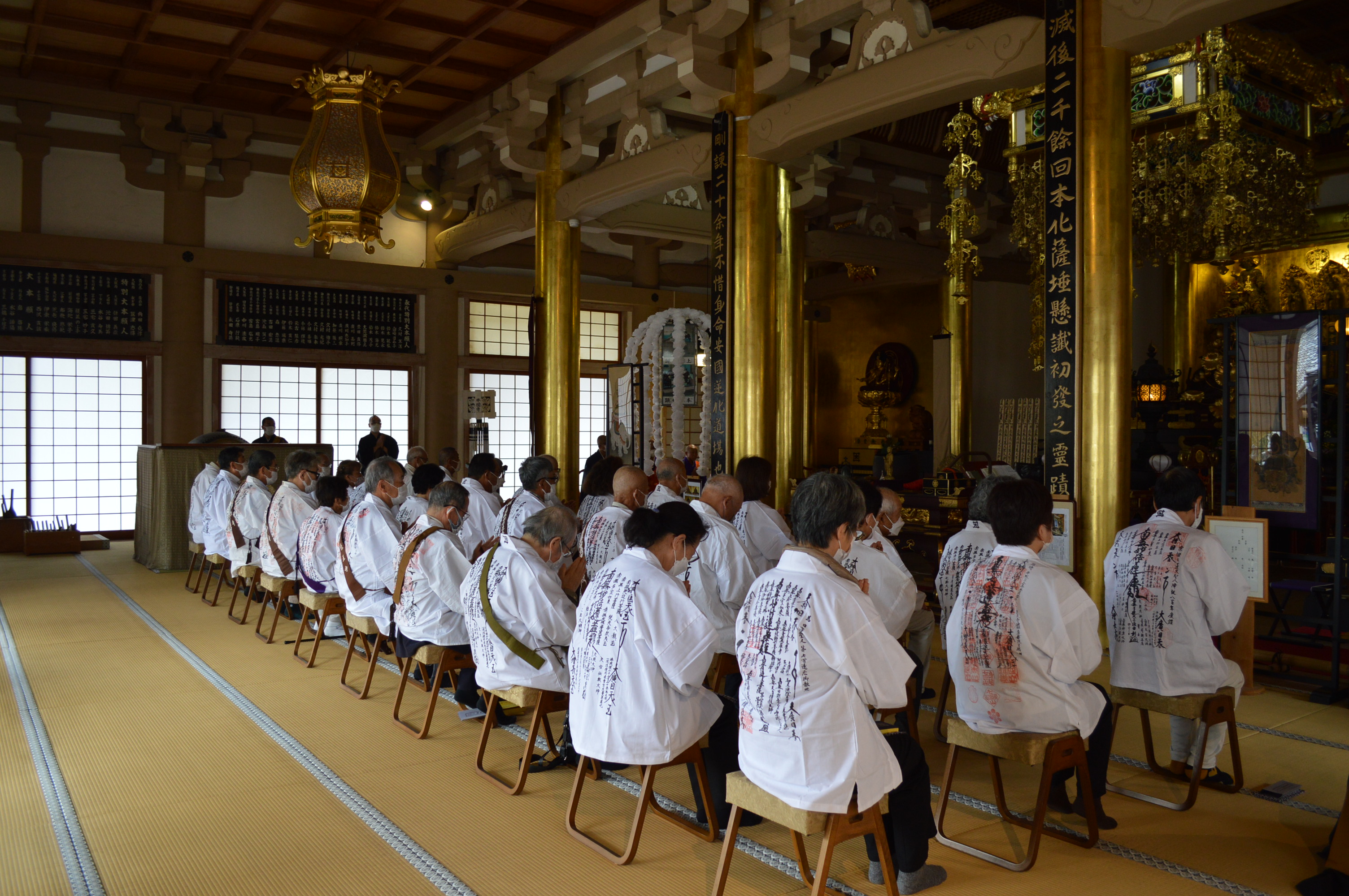 【京都1】10月22日(土)~23日(日)にかけて京都市山科区大本山本圀寺(早川日章猊下)にて日蓮宗近畿教区主催第38回檀信徒研修道場が開催され、近畿地区遠近より30名の道場生が参加した。今年も昨年に引き続き、当日の道場生の宿泊をホテルの個室にし徹底したコロナ感染対策を講じて開催の運びとなった。 今年のテーマは「幸せについて」仏教de幸せ講座開催!幸せになる方法を見つける2日間と題し、初日に3つの講義と講堂参拝、唱題行、夕勤を行い、2日目には4つの講義と仏前作法と盛り沢山の内容で主任、副主任、講師のお上人方より丁寧に説明を受け修行なされた。 閉校式では来賓の京都八本山会会本の本山立本寺貫首上田日瑞猊下より「1泊2日ご苦労様でございました。本当に皆様はこの日蓮宗の中心の信者さんだということをご自覚を是非して頂きたいと思います。皆様こうして信仰して下さったその功徳をまたお帰りになったら一人でも二人でもいいですから受け取ってもらえるような方々にお話しして来年のこの研修道場に参加して頂きご信仰にご精進賜りたいとこのように思う次第でございます」と道場生にお祝いの言葉を述べられた。