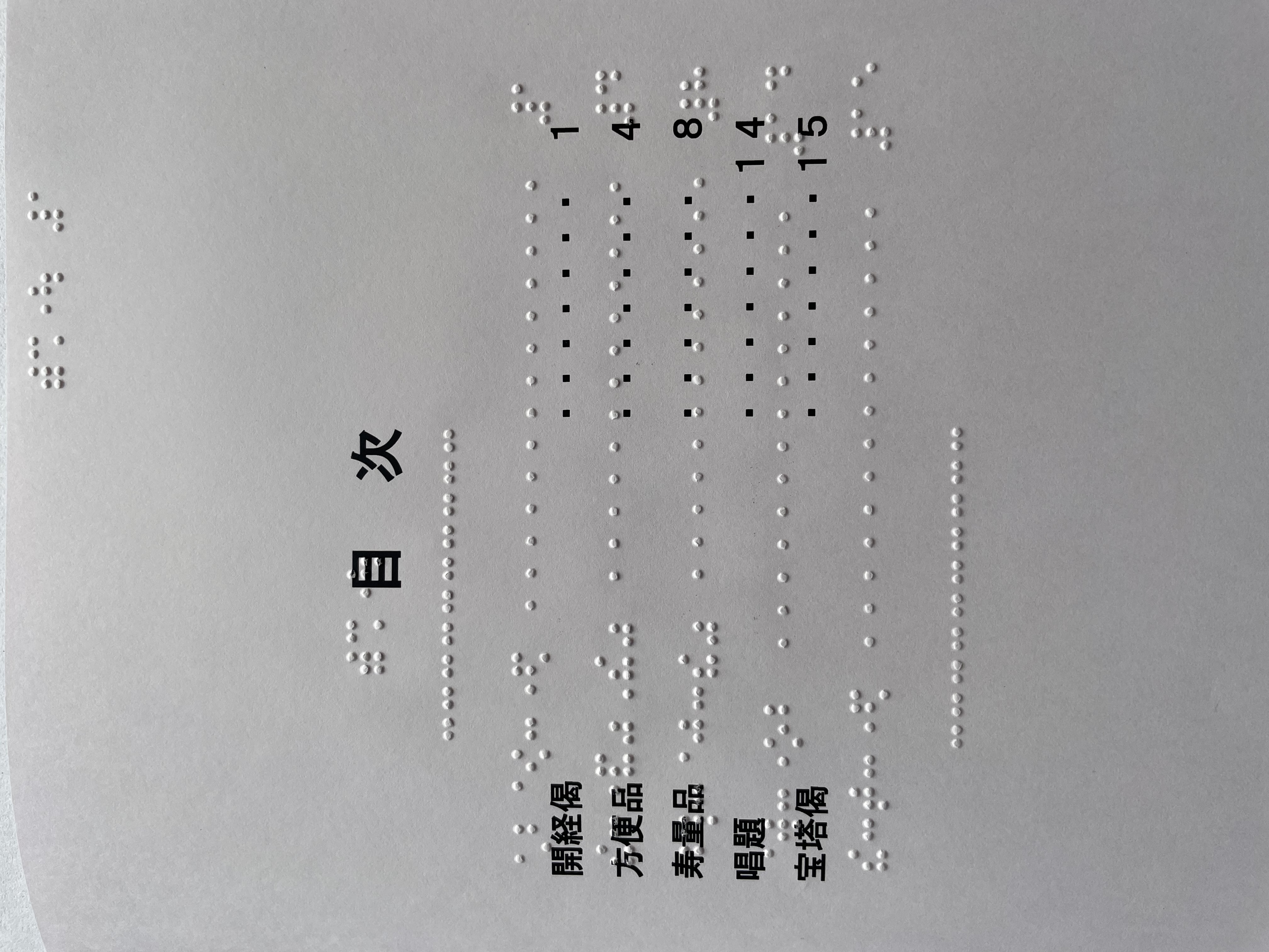 寺院の法務においてこの点字経本が実際に活用される場面は多くないと思われるが、こういった活動が視覚障害者に対する理解を深めるための啓蒙活動や就労支援に繋がることであると強く願い、ご紹介させて頂いた。