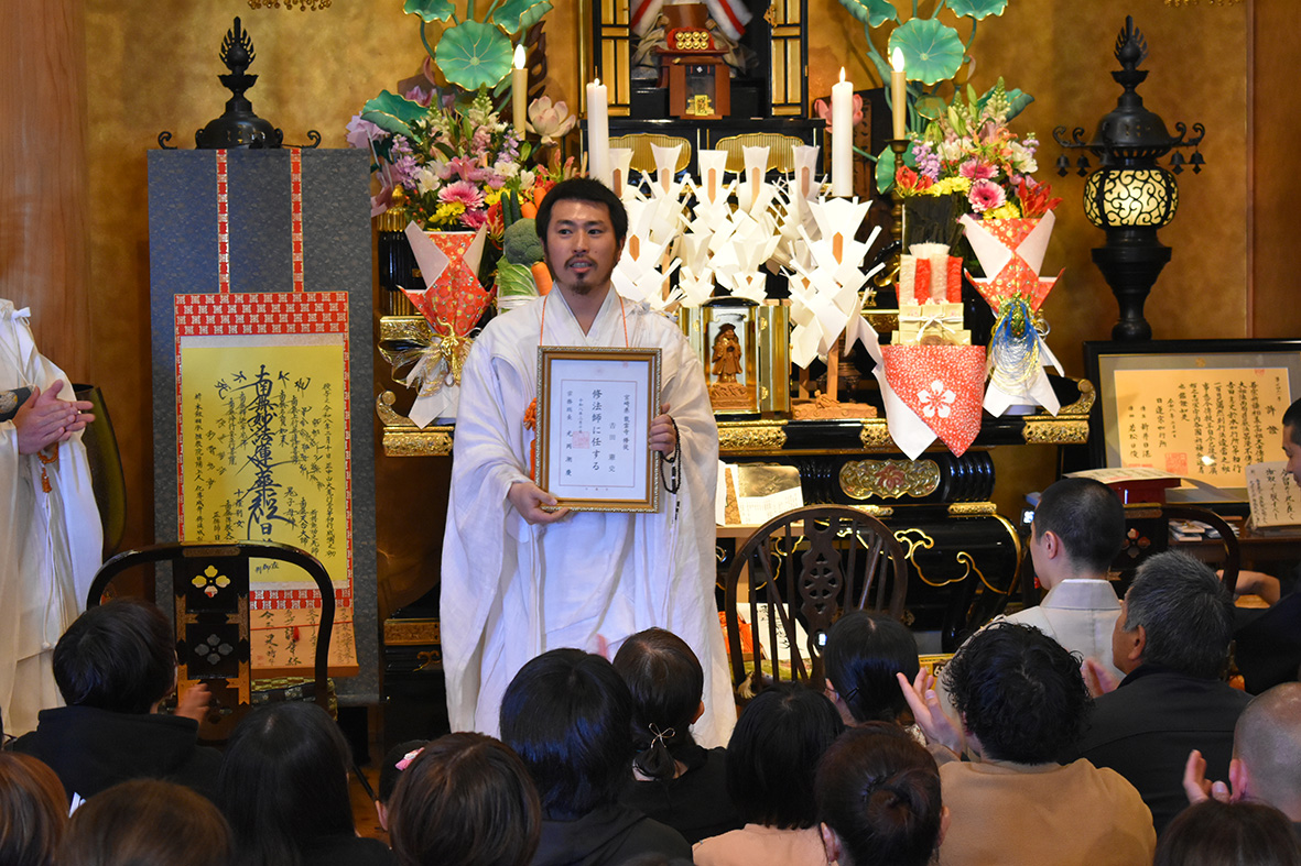 告。続く謝辞では「無事に今⽇の⽇を迎えることができたのは、仏祖三宝諸天善神のご加護