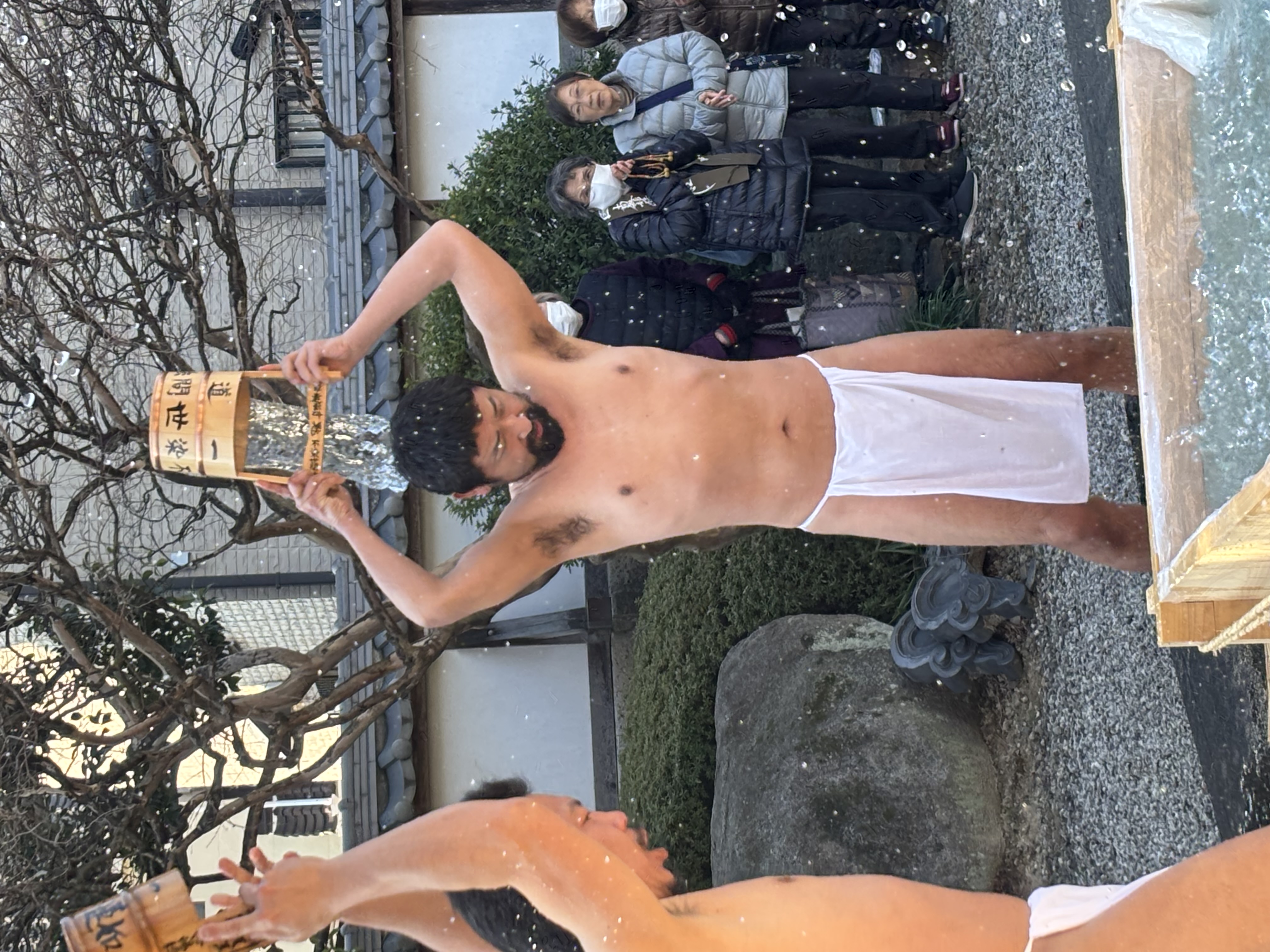 8時30分に北外山会館を行列で出発し敬法寺に到着後、堂内で一読。9時より参列者が見守る中、力強い水行がおこなわれた。