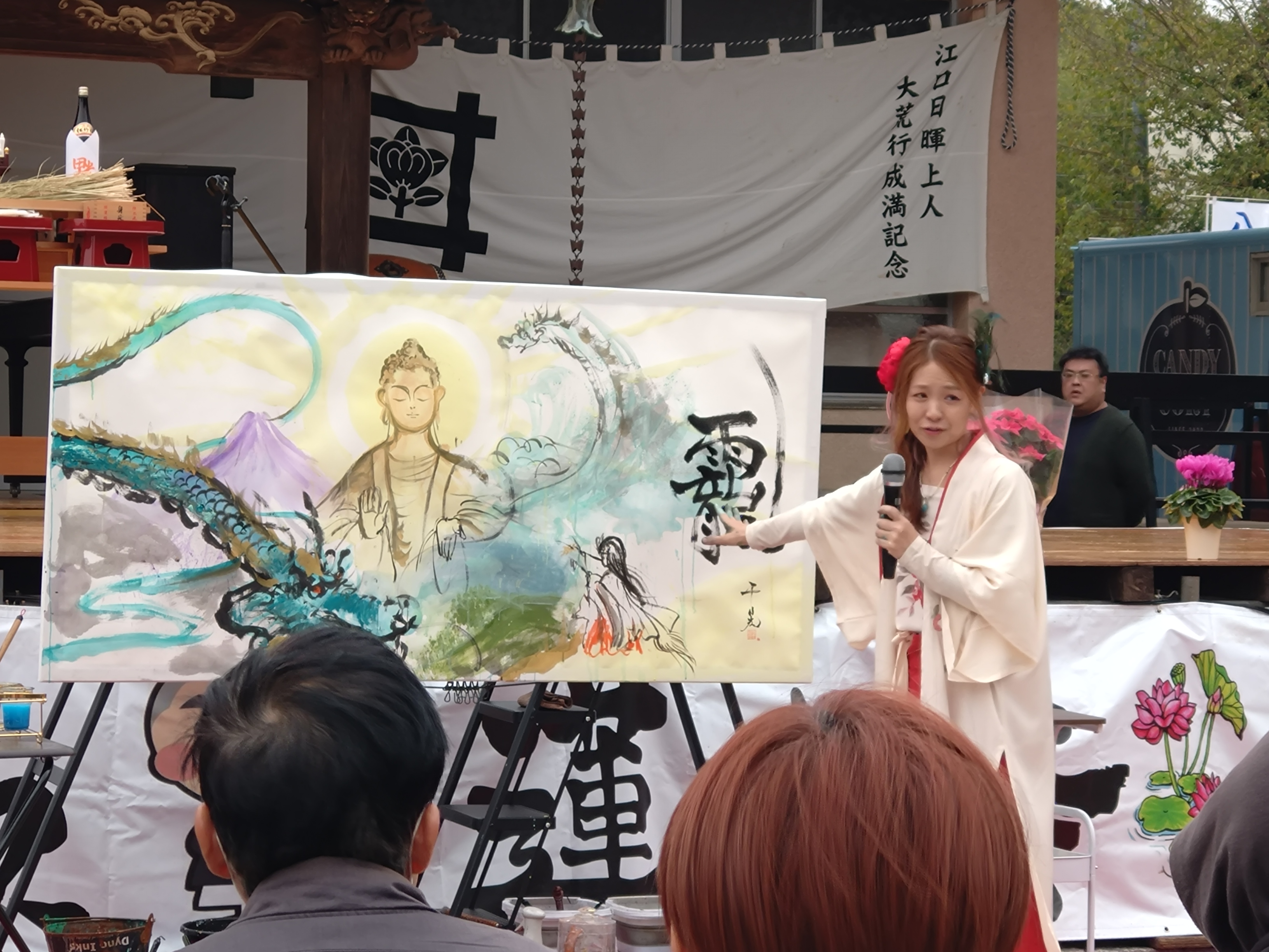 感謝祭法要には日蓮宗西部青年会各上人が出仕し、アーティストのCHAKYさんが法要中に絵を描き上げるライブペイントにより法要の場に彩りを加えた。