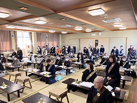 閉会式では、穂坂孝史宗務所長導師のもと参加者全員で自我偈をお読みし、犠牲となられた方々の慰霊、被災地の早期復興をお祈りした。