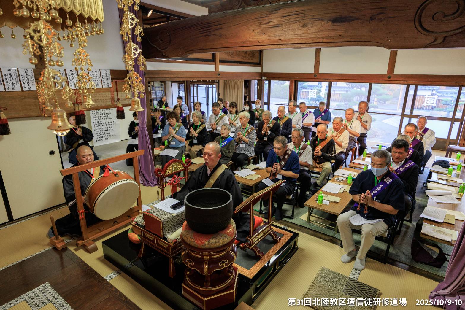 【福井南】高浜町妙長寺で檀信徒研修道場が10月9日~10日の2日間行われた。管内の檀信徒だけでなく、石川、富山、新潟の方々も来て、約40名近く参列された。